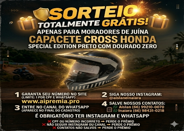 ⚠️ ATENÇÃO: Este sorteio é exclusivo para moradores de Juína – MT.